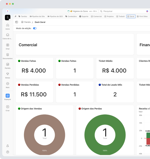 O Dashboard mais importante do curso, nele eu agrupo todos as tarefas organizadas, além de informações comerciais e etc.